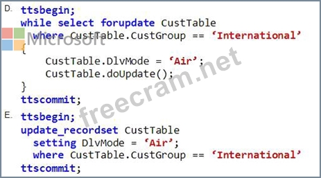 Validation must occur when customer records are updated. For all customers where the value of the customer group field is international, you must the delivery mode to Air.