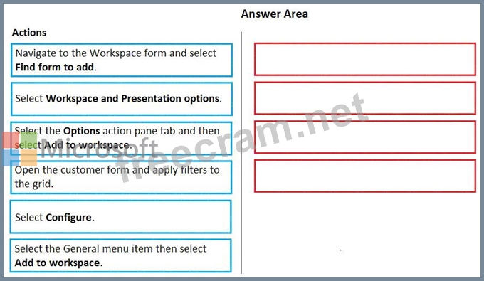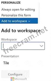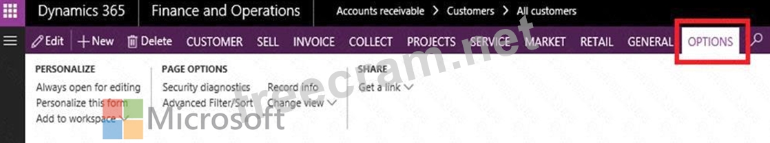 For some pages that include lists, the Add to workspace personalization feature is available in the Personalize group on the Options tab of the Action Pane. This feature lets you push relevant information from the current list to a specific workspace.
