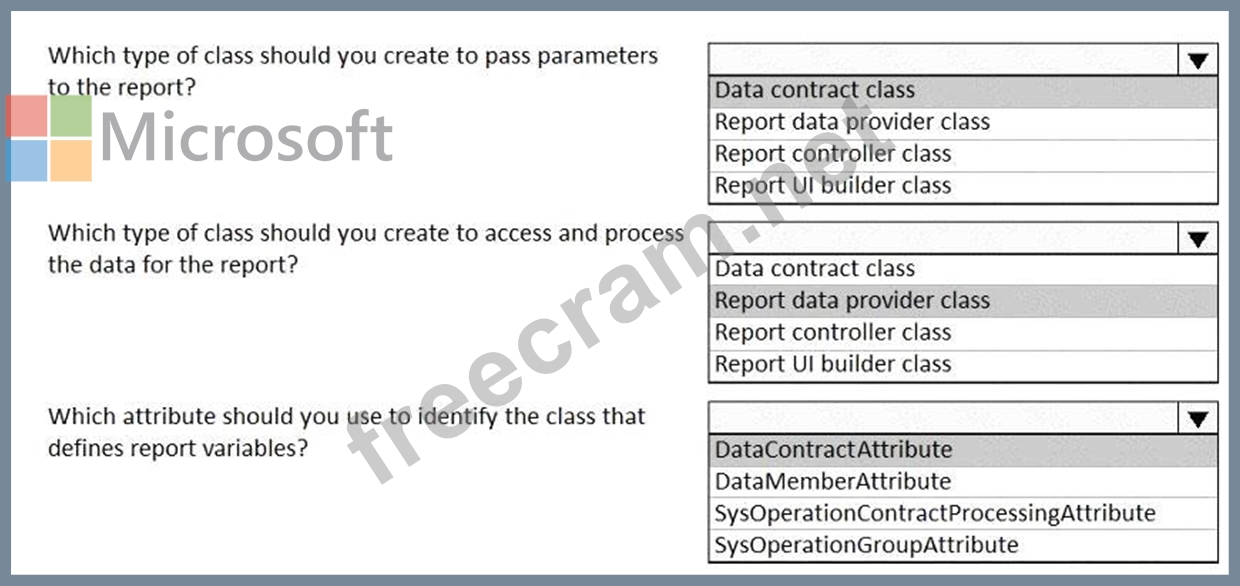 Question 43: You are creating a Dynamics 365 Finance and Operations repor...