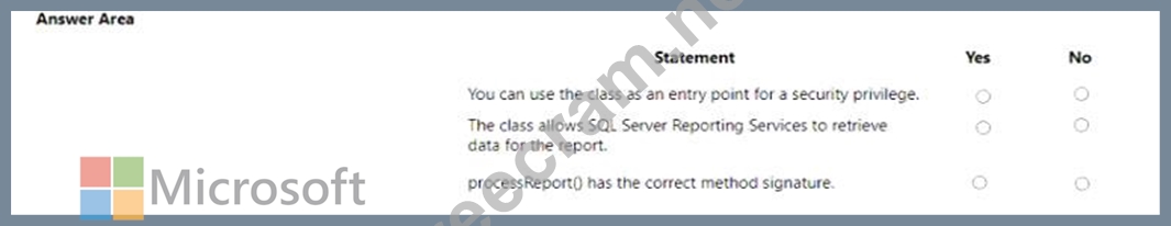Question 43: You are creating a Dynamics 365 Finance and Operations repor...
