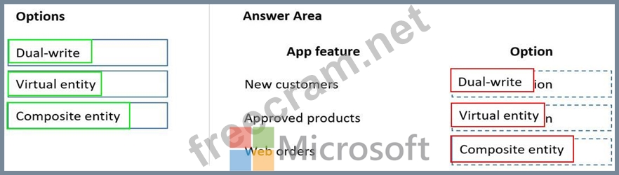 What should you use? To answer, drag the appropriate options to the correct app features. Each option may be used once, more than once, or not at all. You may need to drag the split bar between panes or scroll to view content.
