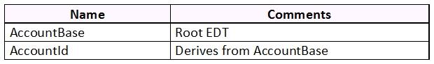 You are a Dynamics 365 Finance developer. You have the following Extended Data Types (EDTs):