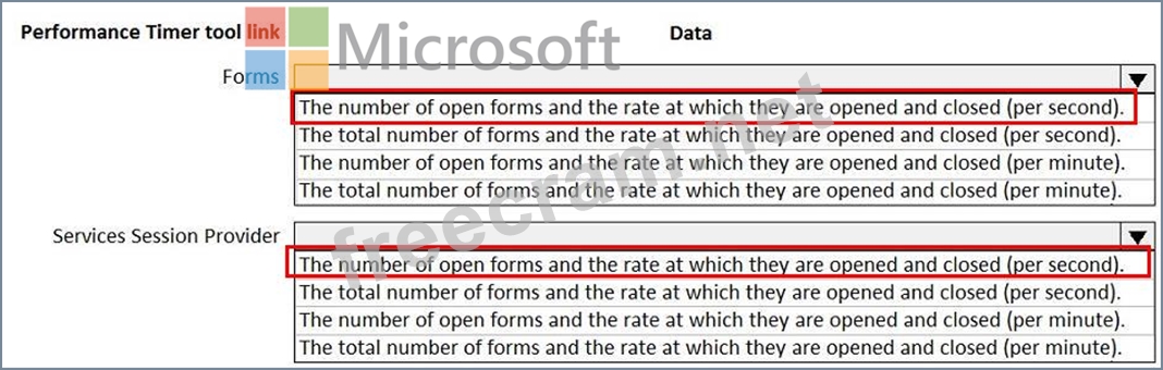 You launch the Performance Timer tool to troubleshoot performance issues with a business process.