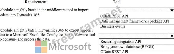 A company has a cloud-based Dynamics 365 Finance environment and uses an e-commerce website for retail operations. The website has business to business (B2B) capabilities. The company uses a middleware integration tool to process data.