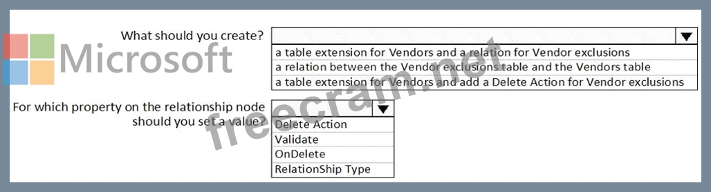Box 1: a table extension for Vendors and relation for the Vendor exclusions Box 2: RelationShip Type Reference: