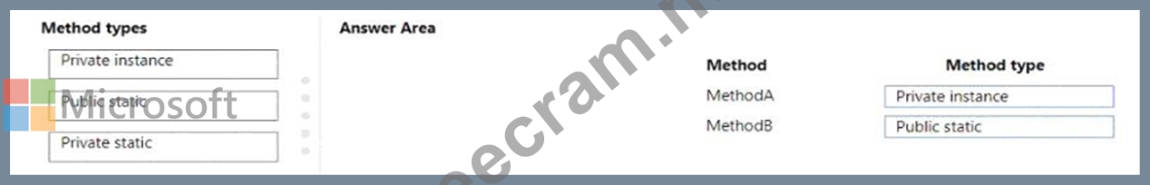 Which method types should you use? To answer, drag the appropriate method types to the correct methods.