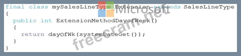 You must extend the class SalesLineType and add a new method that returns the day of week for the system's current date as an integer value.