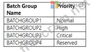 A company is automating manual processes in the Dynamics 365 finance and operations apps. The company has the following batch groups and priorities configured:
