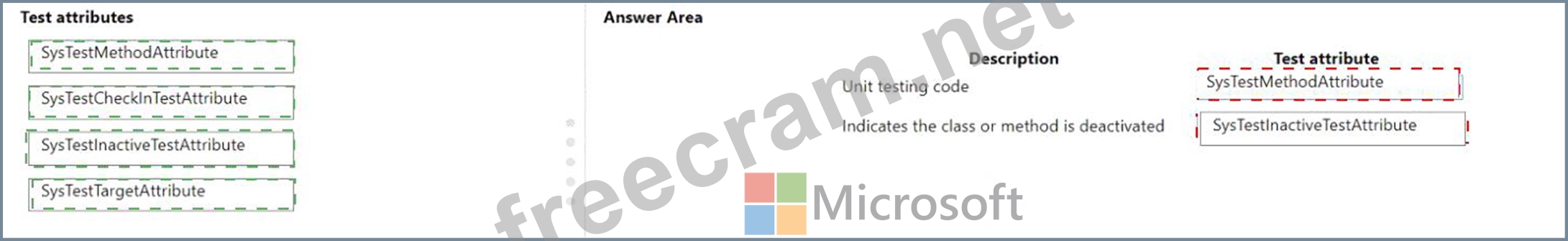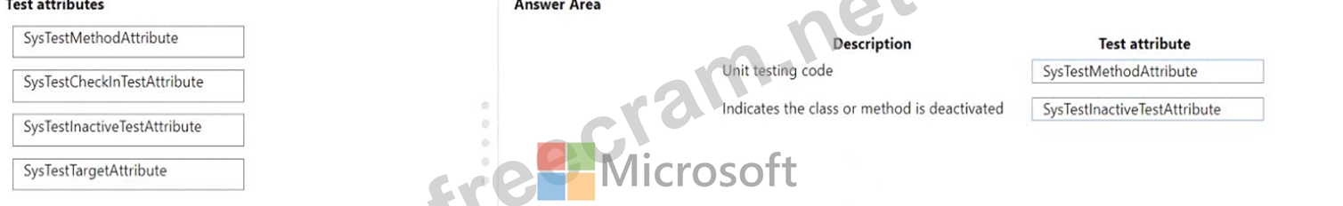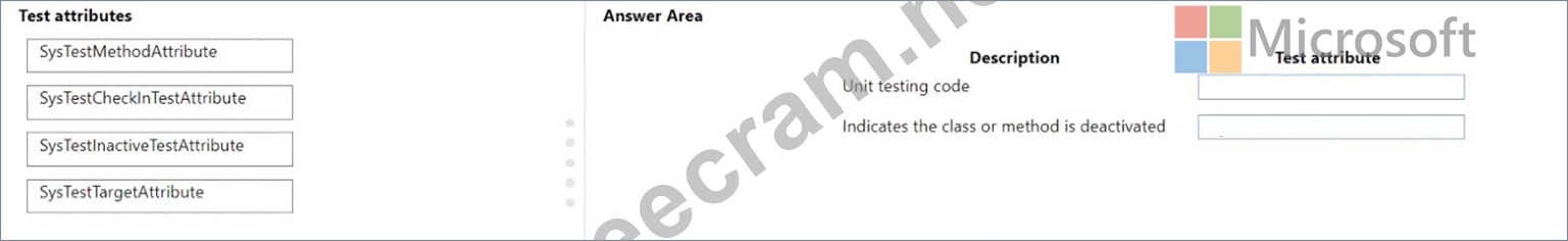 Which test attribute should you use? To answer, drag the appropriate test attributes to the correct descriptions.