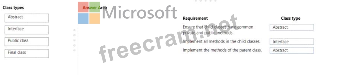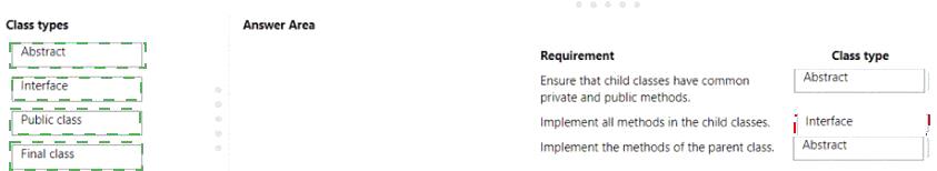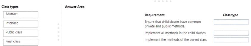 Which class types should you use? To answer, drag the appropriate class types to the correct requirements.