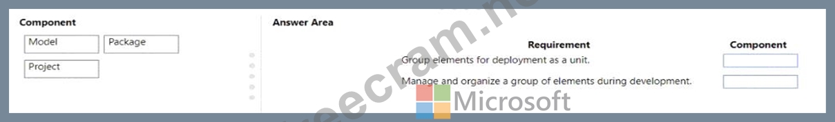 Which components should you use? To answer, drag the appropriate components to the correct requirements.