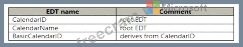 A company uses Dynamics 365 Finance. You are customizing elements for the extended data types (EDTs) shown in the following table.