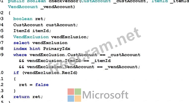 Question 26: You are a Dynamics 365 Finance developer. You have the follo...