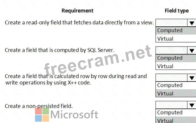Which field types should you use? To answer, drag the appropriate field types to the correct requirements.