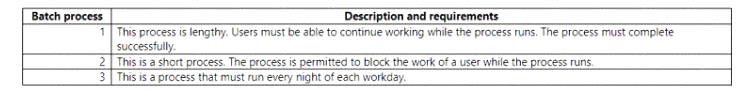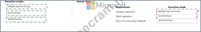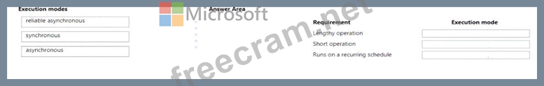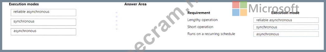 Which execution modes should you use? To answer. drag the appropriate execution modes to the correct requirements. Each execution mode may be used once, more than once, or not at all. You may need to drag the split bar between panes or scroll to view content.