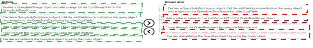 You must use QueryBuilder classes to implement a query that loops through all customers for whom the customer group equals EXT. You need to implement the query. You declare and initialize a query Object.