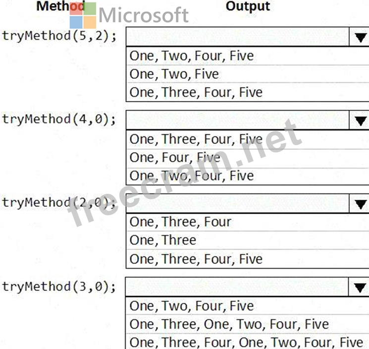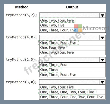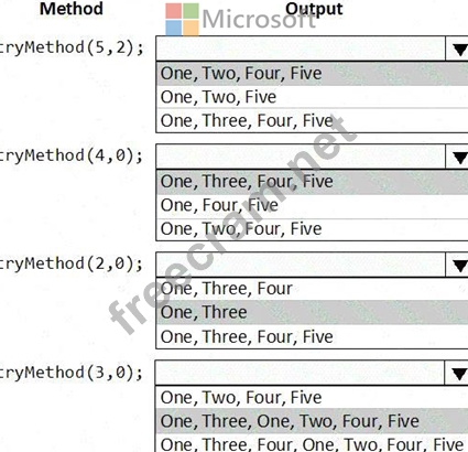What is the correct output for the method? To answer, select the appropriate option in the answer area.