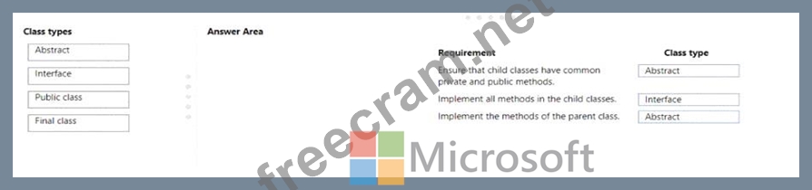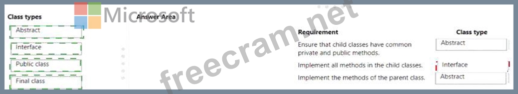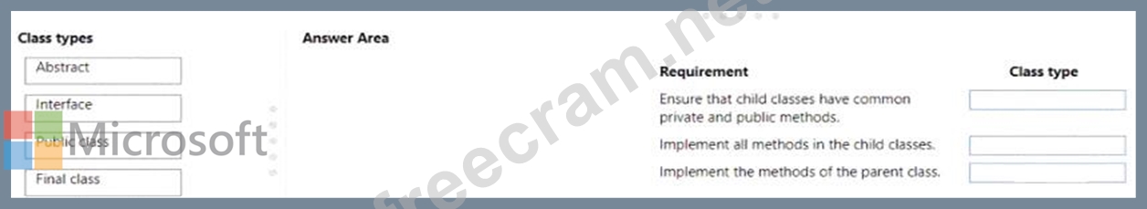 Which class types should you use? To answer, drag the appropriate class types to the correct requirements.