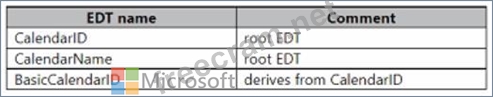 A company uses Dynamics 365 Finance. You are customizing elements for the extended data types (EDTs) shown in the following table.