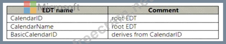 You have a Table named WorkCalendar. The table has a column named BasicCalendarlD that uses the BasicCalendariD EDT. You need to increase the length of the column by using an extension.