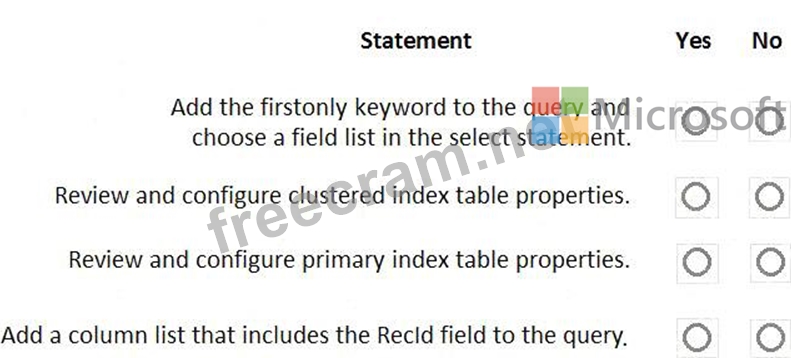 Question 98: You are a Dynamics 365 Finance developer. You have a table n...