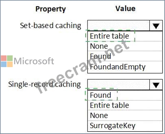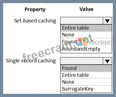 How should you configure CacheLookup properties? To answer, select the appropriate options in the answer area.