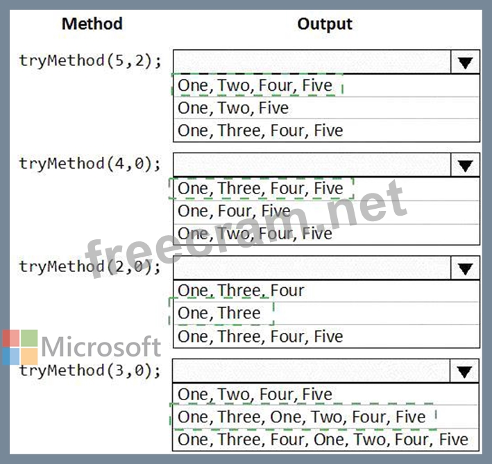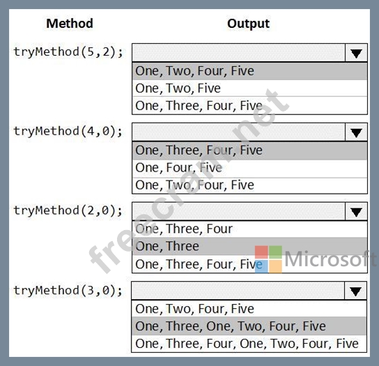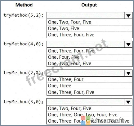 What is the correct output for the method? To answer, select the appropriate option in the answer area.
