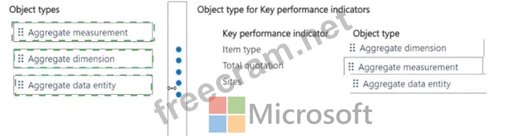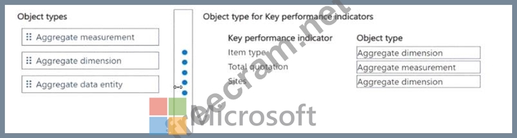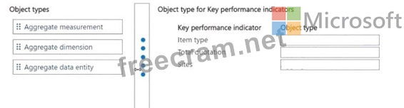 Which object types should you use? To answer, move the appropriate object types to the correct key performance indicators. You may use each object type once, more than once, or not at all. You may need to move the split bar between panes or scroll to view content.