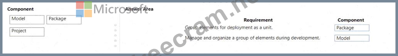 Which components should you use? To answer, drag the appropriate components to the correct requirements.