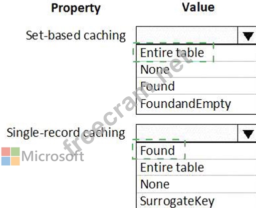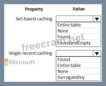 How should you configure CacheLookup properties? To answer, select the appropriate options in the answer area.
