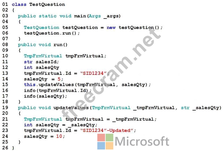 You are a Dynamics 365 Finance and Operations developer. You have the following code: (Line numbers are created for reference only.)