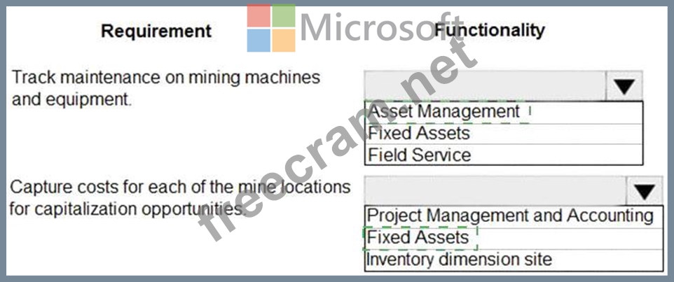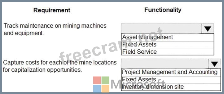 A mining company is upgrading their system to Dynamics 365 Finance and Dynamics 365 Supply Chain Management.