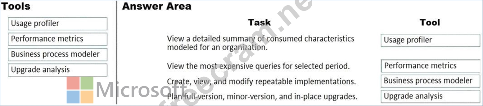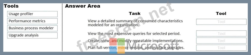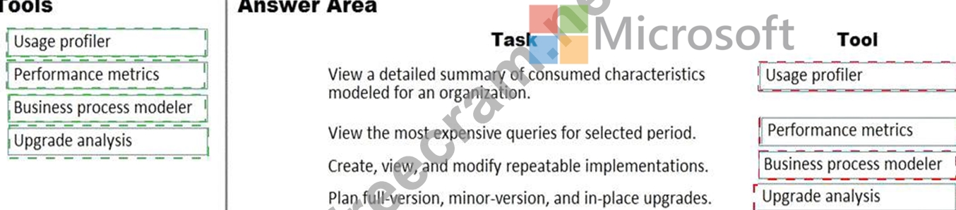 What should you recommend? To answer, drag the appropriate tools to the correct tasks. Each tool may be used once, more than once, or not at all. You may need to drag the split bar between panes or scroll to view content.