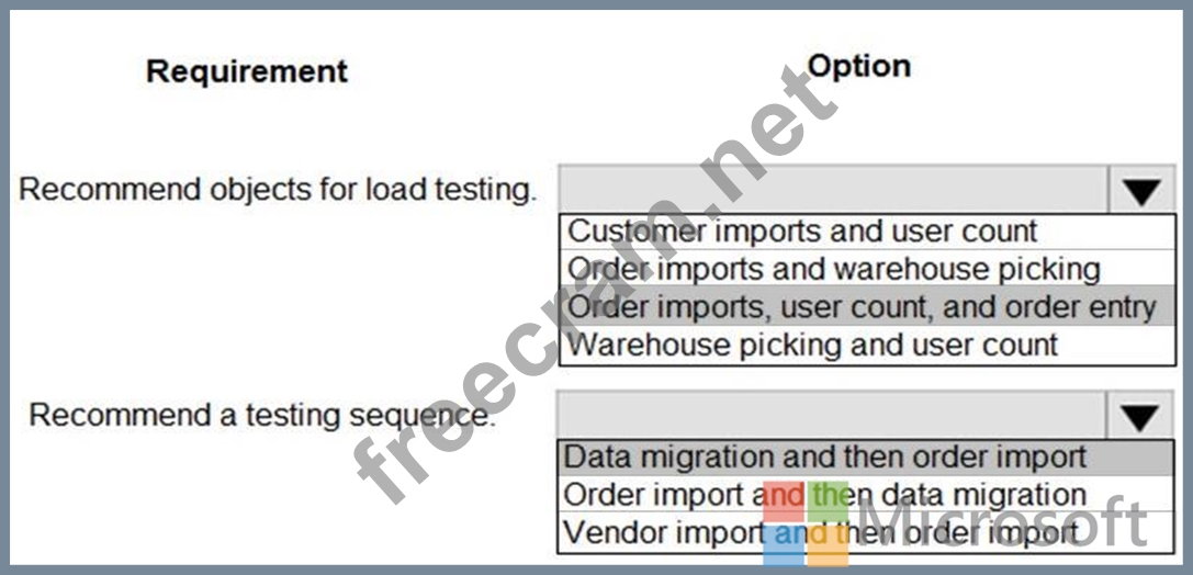 You need to recommend a performance and load testing strategy for the requirement. What should you recommend? To answer, select the appropriate options in the answer area. NOTE: Each correct selection is worth one point.