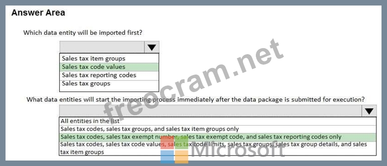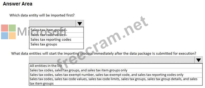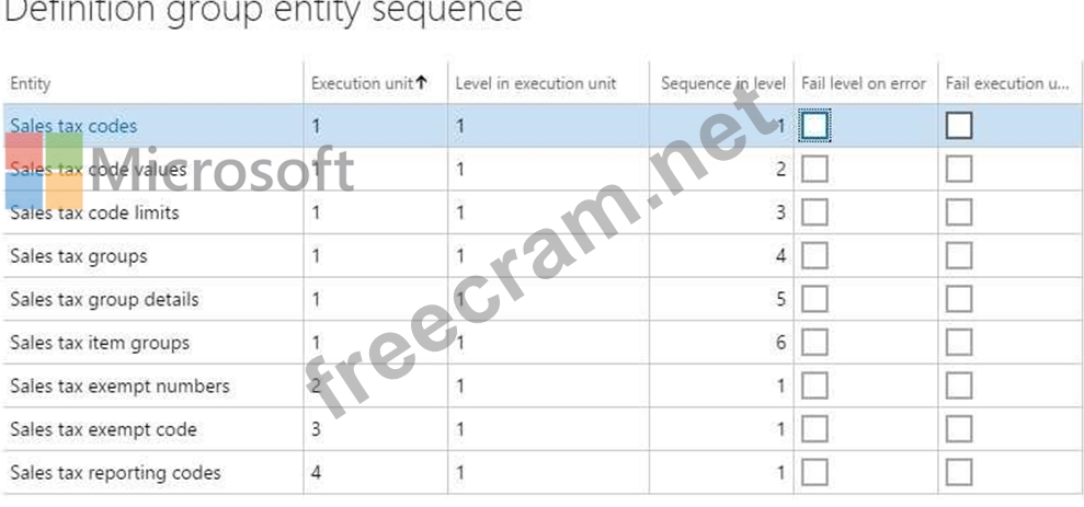 A company sets up a data package to import data by using the data management framework. You have the following data entity sequence.