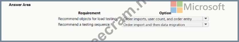You need to recommend a performance and load testing strategy for the requirement. What should you recommend? To answer, select the appropriate options in the answer area. NOTE: Each correct selection is worth one point.