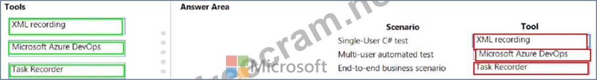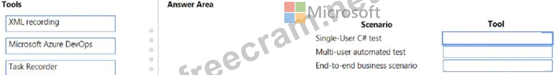 Which tool should you use? To answer, drag the appropriate tools to the correct scenarios. Each tool may be used once, more than once, or not at all. You may need to drag the split bar between panes or scroll to view content.