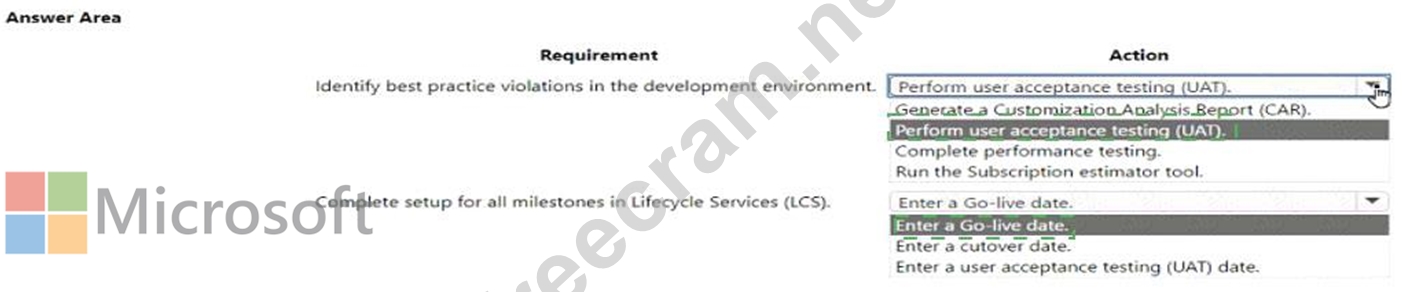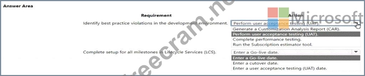 The project team should validate solution readiness. The following prerequisites must be met before the Go-live Readiness Review with Microsoft can be initiated. The production environment can be deployed after the Go-live Readiness Review with Microsoft has been successfully completed.