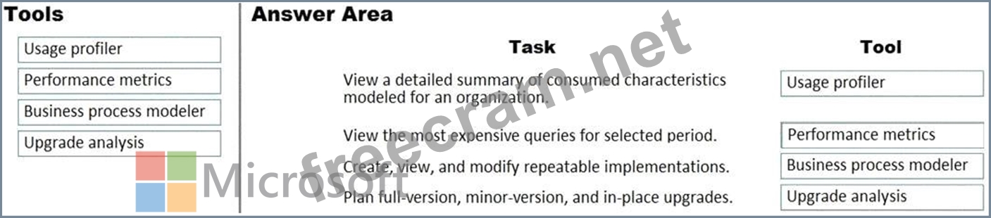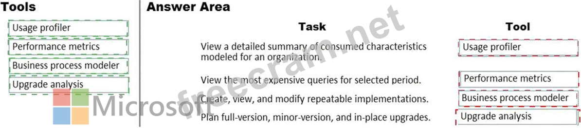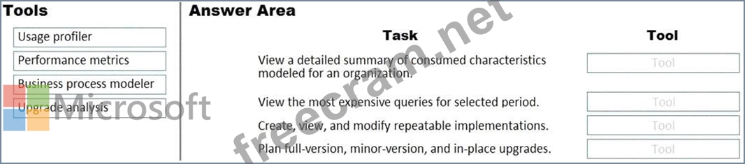 What should you recommend? To answer, drag the appropriate tools to the correct tasks. Each tool may be used once, more than once, or not at all. You may need to drag the split bar between panes or scroll to view content.