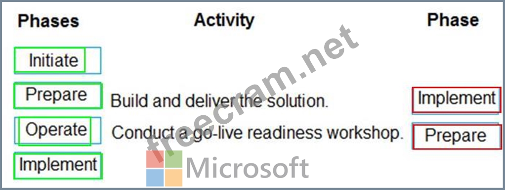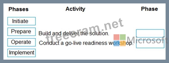 In which phase is the activity performed? To answer, drag the appropriate phases to the correct activities. Each phase may be used once, more than once, or not at all. You may need to drag the split bar between panes or scroll to view content.