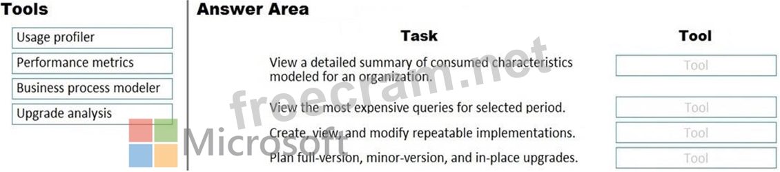 What should you recommend? To answer, drag the appropriate tools to the correct tasks. Each tool may be used once, more than once, or not at all. You may need to drag the split bar between panes or scroll to view content.