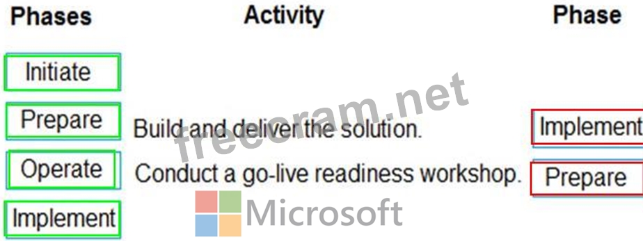 In which phase is the activity performed? To answer, drag the appropriate phases to the correct activities. Each phase may be used once, more than once, or not at all. You may need to drag the split bar between panes or scroll to view content.