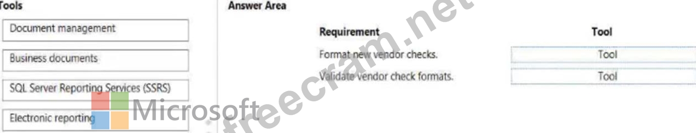 The company designs vendor checks that will be accepted by banks. The company wants to format new vendor checks for multiple banks.