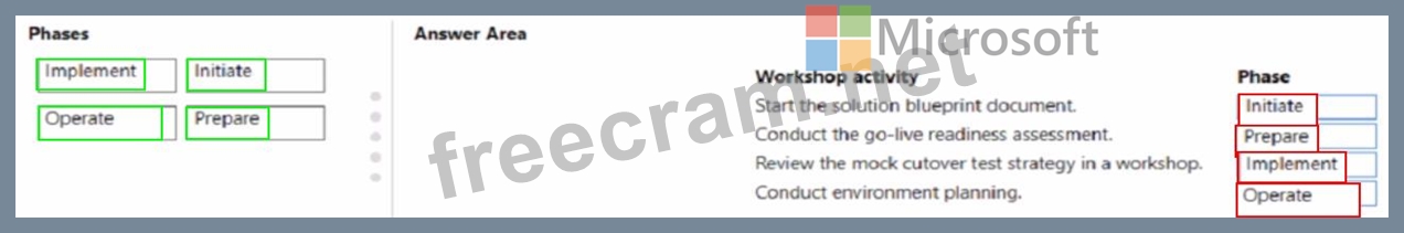 Which phases will include the workshop activities? To answer, drag the appropriate phases to the correct workshop activities. Each phase may be used once, more than once, or not at all. You may need to drag the split bar between panes or scroll to view content NOTE: Each correct selection is worth one point