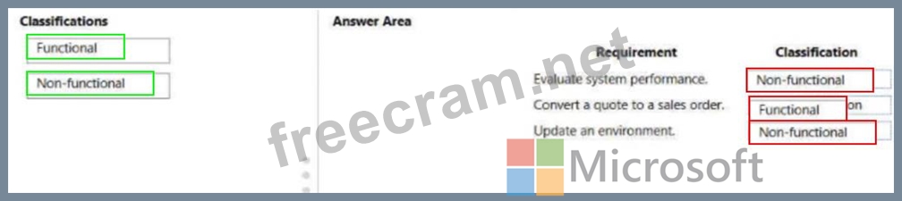 What is the classification for each requirement? To answer, drag the appropriate classifications to the correct requirements. Each classification may be used once, more than once, or not at all. You may need to drag the split bar between panes or scroll to view content.