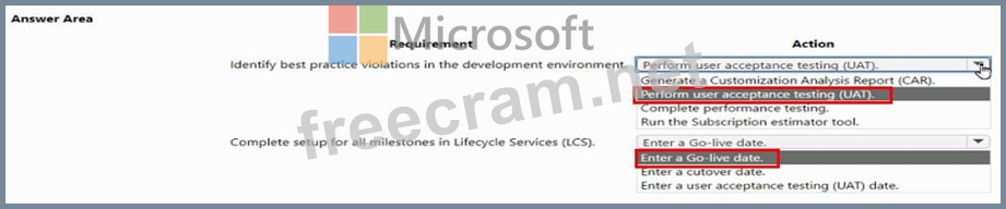 A midsize company is enrolled in the self-guided FastTrack program. The company is preparing a Dynamics 365 Supply Chain Management implementation to go Irve.