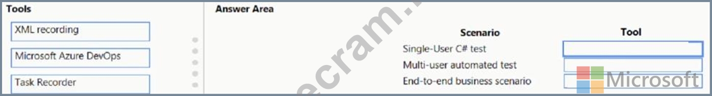 Which tool should you use? To answer, drag the appropriate tools to the correct scenarios. Each tool may be used once, more than once, or not at all. You may need to drag the split bar between panes or scroll to view content.