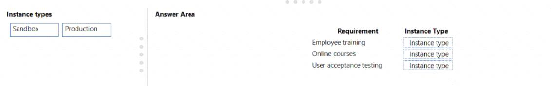 Which instance type should you recommend? To answer, drag the appropriate instance types to the correct requirements. Each instance type may be used once, more than once, or not at all. You may need to drag the split bar between panes or scroll to view content.
