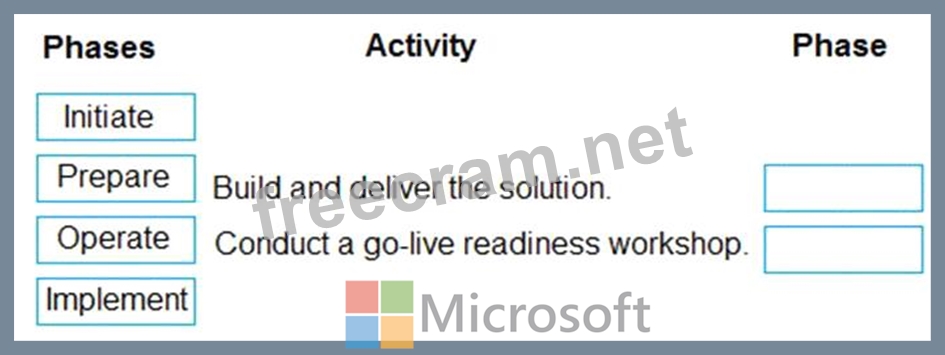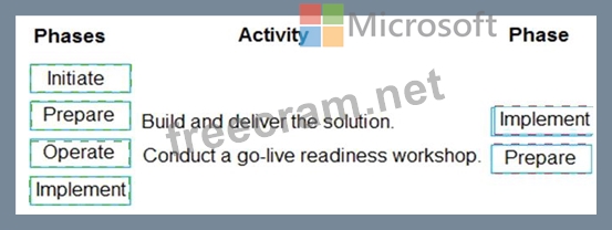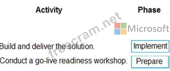 In which phase is the activity performed? To answer, drag the appropriate phases to the correct activities. Each phase may be used once, more than once, or not at all. You may need to drag the split bar between panes or scroll to view content.