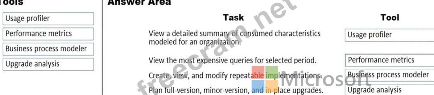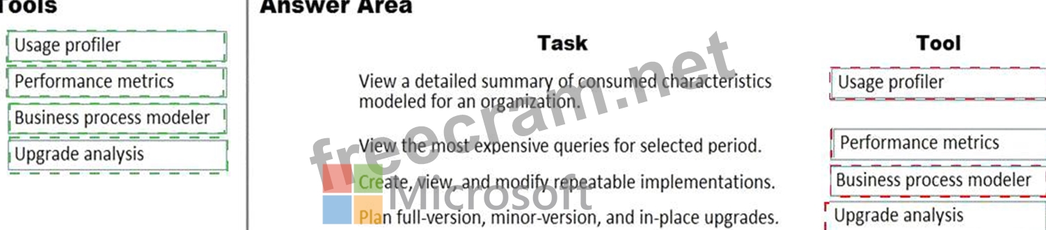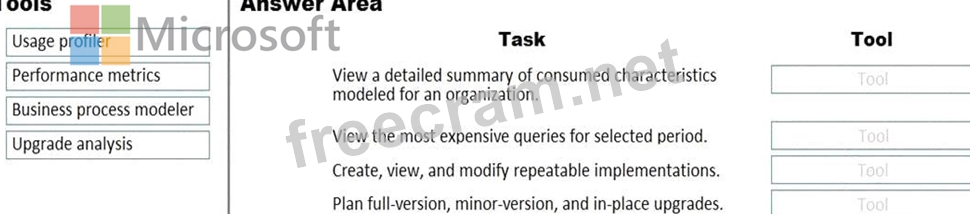 What should you recommend? To answer, drag the appropriate tools to the correct tasks. Each tool may be used once, more than once, or not at all. You may need to drag the split bar between panes or scroll to view content.